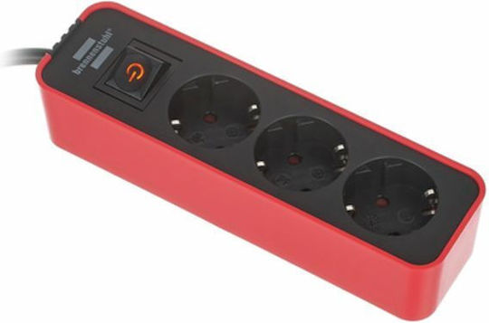 Brennenstuhl Ecolor Πολύπριζο 3 Θέσεων με Διακόπτη και Καλώδιο 1.5m Κόκκινο 1153230070