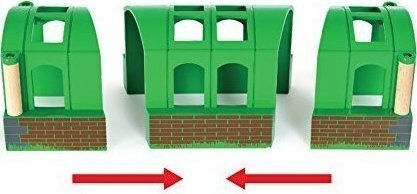 Flexible Tunnel της Brio. Το ξύλινο σετ τρένου σας λείπει μια ευθεία σήραγγα; Ή μήπως χρειάζεστε ένα που θα τρέχει στη γωνία; Το σετ Flexible Tunnel θα λειτουργήσει και στις δύο περιπτώσεις. Το παιχνίδι αποτελείται από 3 τμήματα που μπορούν να τακτοποιηθούν για να δημιουργήσουν μια σήραγγα σε μια καμπύλη ή σε μια ευθεία διαδρομή. Μπορούμε επίσης να τακτοποιήσουμε ξεχωριστά μέρη του τούνελ. Το προϊόν είναι κατασκευασμένο από υψηλής ποιότητας πλαστικό με ξύλινα στοιχεία.