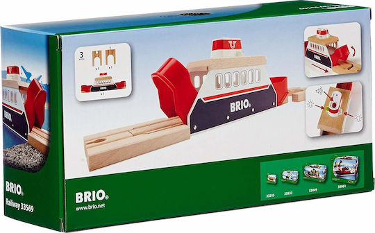 Το BRIO Ferry μεταφέρει το τρένο στην ξηρά. Το πλοίο διαθέτει φωτισμό και ήχο που ενεργοποιούνται με μια απλή πίεση ενός κουμπιού. Με τις δύο ράγες πρόσδεσης (συμπεριλαμβάνονται), η πόρτα του φέρι ανοίγει κατά την άφιξη.
