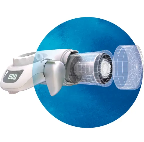 Ισχυρό φιλτράρισμα χάρη στη μεμβράνη με κοίλες ίνες (HF), τον ενεργό άνθρακα σε κόκκους και τις ίνες ανταλλαγής ιόντων.