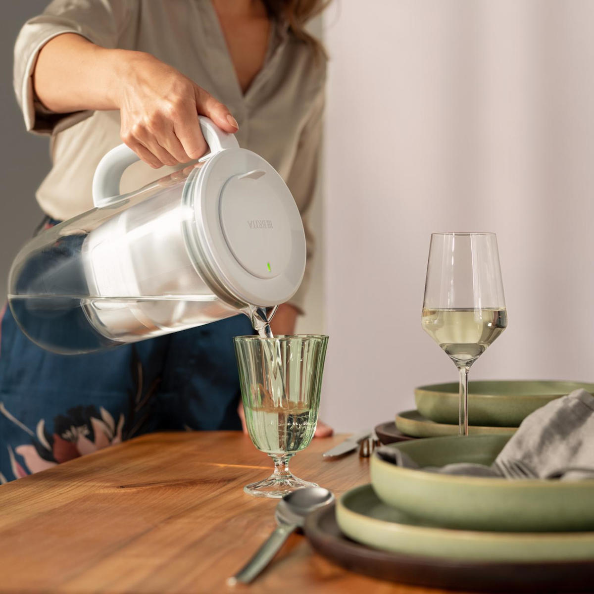 Με χωρητικότητα 2500ml, αυτή η γυάλινη κανάτα παρέχει άφθονο χώρο για να αποθηκεύετε και να σερβίρετε το φιλτραρισμένο νερό σας. Ο όγκος φιλτραρισμένου νερού των 1.5Lt σας επιτρέπει να απολαμβάνετε μια σημαντική ποσότητα καθαρισμένου νερού ανά πάσα στιγμή, καθιστώντας την ιδανική για νοικοκυριά, γραφεία ή ακόμα και κοινωνικές συγκεντρώσεις.