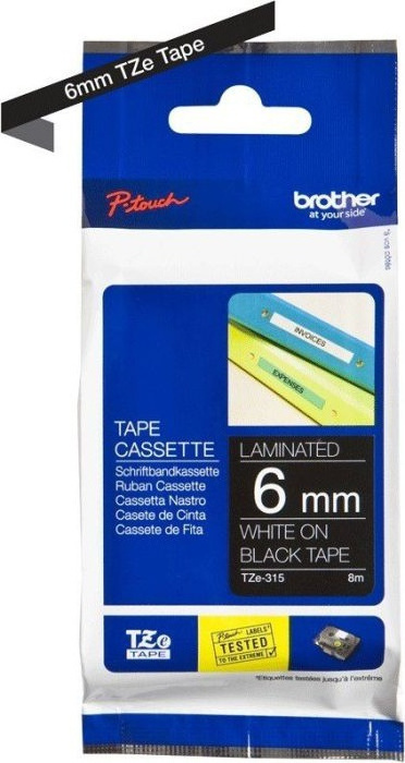 Η γνήσια κασέτα ταινίας ετικετογράφου Brother TZe-315 παρέχει ευκρινείς και ευανάγνωστες ετικέτες που διαρκούν. Είναι ιδανική για χρήση σε σπίτι, γραφείο ή επαγγελματικό χώρο. Αυτή η λευκή ταινία σε μαύρο φόντο TZe-315 μπορεί να χρησιμοποιηθεί για την αναγνώριση περιεχομένων σε φακέλους, ράφια, USB flash drives, καθώς και καλώδια και άλλη εξοπλισμό. Οι αυτοκόλλητες ετικέτες μεlaminate έχουν αναπτυχθεί για να αντέχουν σε ακραίες θερμοκρασίες και είναι ανθεκτικές σε χημικά, φθορά, ηλιακό φως και βύθιση σε νερό, καθιστώντας τες κατάλληλες για εσωτερική και εξωτερική χρήση. Οι κασέτες TZe εγκαθίστανται γρήγορα και εύκολα, και διατίθενται σε διάφορα πλάτη ετικετών, χρώματα και υλικά, διασφαλίζοντας ότι η μηχανή P-touch καλύπτει όλες τις ανάγκες ετικετογράφησης σας.