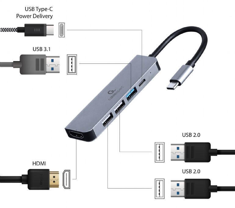 CABLEXPERT USB TYPE-C 5IN1 MULTI-PORT ADAPTER (HUB+HDMI+PD)