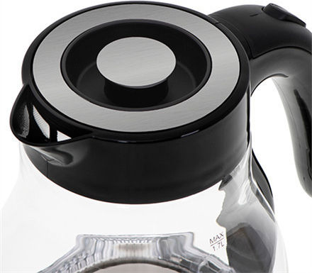 Διαθέτει περιστρεφόμενη βάση για ευκολία, επίπεδο ανοξείδωτο στοιχείο θέρμανσης, και φωτεινό δείκτη που δείχνει πότε το νερό βράζει. Το γυάλινο και κομψό σχέδιο επιτρέπει τον βρασμό 1.7 λίτρων νερού ταυτόχρονα.