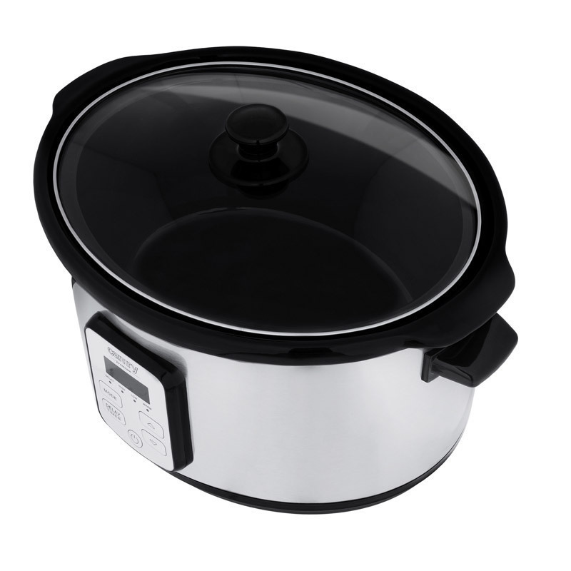 Η οθόνη LED μετρά αντίστροφα το χρόνο μέχρι το τέλος του μαγειρέματος, ώστε να γνωρίζετε πότε να ξεκινήσετε την προετοιμασία τυχόν προσθηκών και να στρώσετε το τραπέζι. Επιπλέον, το καπάκι από σκληρυμένο γυαλί σας επιτρέπει να βλέπετε και να ελέγχετε την κατάσταση των προϊόντων στο εσωτερικό. Οι μη θερμαινόμενες λαβές και τα αντιολισθητικά πόδια καθιστούν τη χρήση της γάστρας ασφαλή.