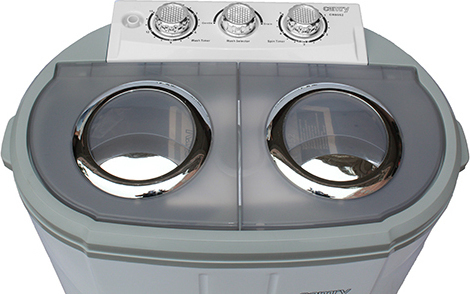 Το μίνι πλυντήριο ρούχων, από την εταιρία Camry, θα σας επιτρέψει να φροντίσετε τα ρούχα σας όταν ταξιδεύετε. Έχει δύο ξεχωριστούς θαλάμους, με τον έναν έχει σχεδιαστεί για το πλύσιμο των ρούχων (μέχρι 3 Kg) και ο άλλος για στύψιμο (έως 1 Kg).