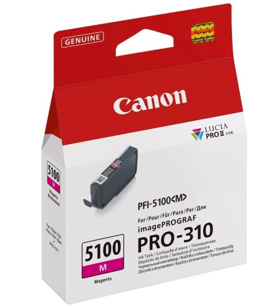 Το Canon PFI-5100 M (Μαγenta) είναι μια γνήσια μελάνι εκτυπωτών που έχει σχεδιαστεί ειδικά για τον εκτυπωτή Canon imagePROGRAF PRO-310. Αυτή η δεξαμενή μελανιού είναι μέρος του συστήματος μελανιού LUCIA PRO II, το οποίο είναι γνωστό για την ικανότητά του να προσφέρει ευρύ φάσμα χρωμάτων και βελτιωμένη ομοιομορφία γυαλάδας για επαγγελματικούς εκτυπώσεις.