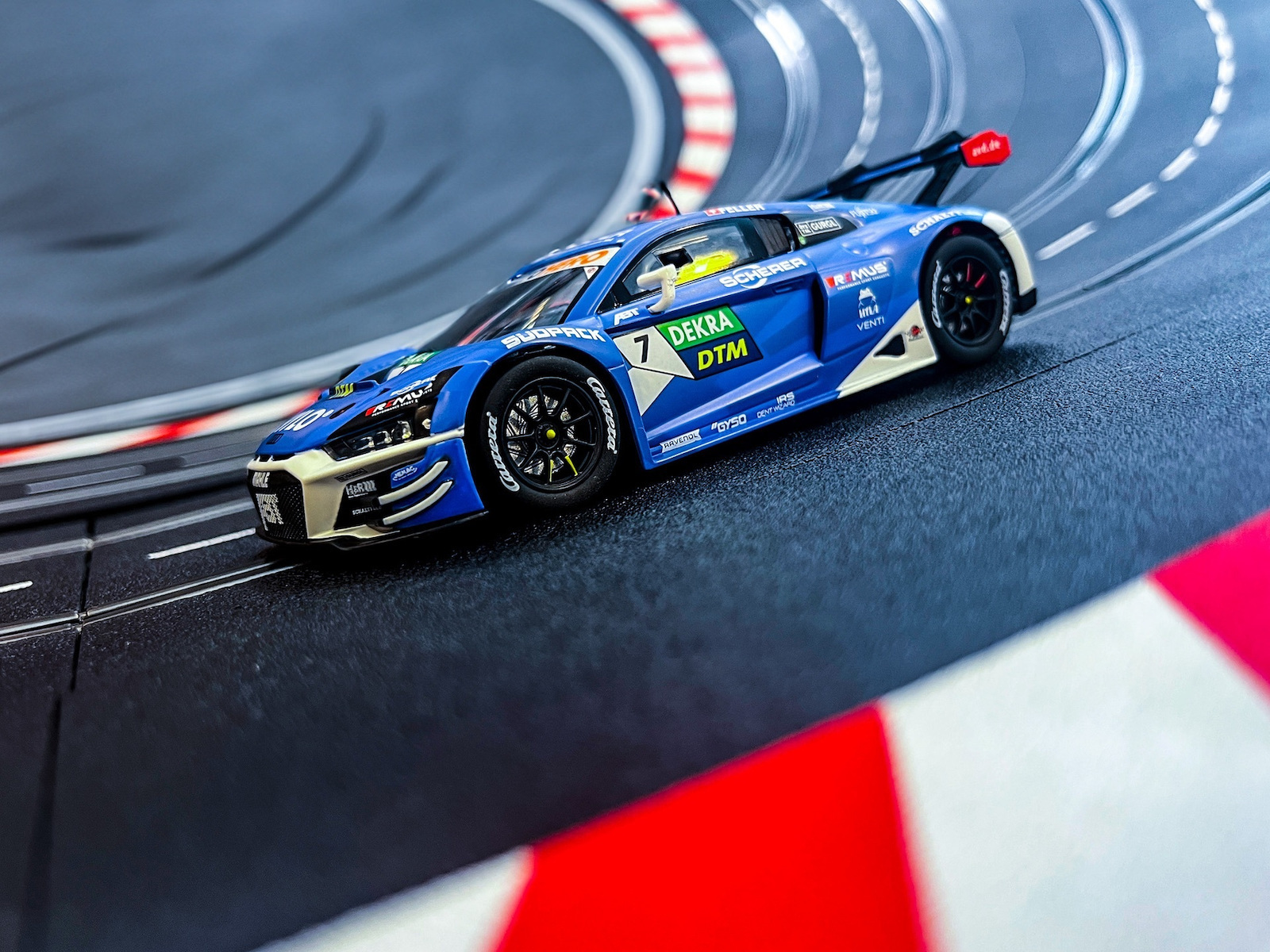 Ένα αυτοκίνητο για πραγματικούς αγωνιστικούς οδηγούς, το Carrera DIGITAL 132 Audi R8 LMS GT3 evo II “Team Abt Sportsline, No.7” επιδεικνύει υψηλές ταχύτητες και απόδοση στην προσωπική πίστα. Εντυπωσιάζει με την κλίμακα 1:32 και τα πλήρως λειτουργικά μπροστινά, πίσω και φλας φώτα.