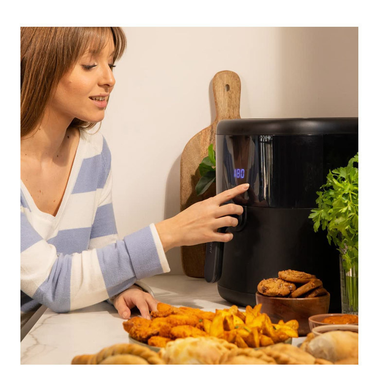 Το βασικό της πλεονέκτημα είναι ότι διατηρεί αναλλοίωτη τη γεύση και την υφή των φαγητών, αλλάζοντας απλά τον τρόπο που μαγειρεύει αγαπημένα γεύματα. Θα μπορείτε και πάλι να απολαύσετε τραγανές κοτομπουκιές και πατάτες “τηγανιτές”, χωρίς όμως να είναι στην πραγματικότητα τηγανιτές, χάρη στην τεχνολογία του αέρα, που ακόμη και με μια κουταλιά λάδι, είτε χωρίς προσθήκη αυτού, διατηρεί την τραγανότητα και απομακρύνει την υγρασία των τροφίμων.