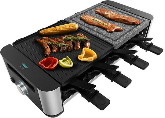 Cecotec Cheese&grill 16000 Inox Mixgrill Επιτραπέζια Ηλεκτρική Ψησταριά Raclette Λείας και Αυλακωτής Πλάκας 1400W Ανοξείδωτη με Ρυθμιζόμενο Θερμοστάτη 22×20εκ. 03225