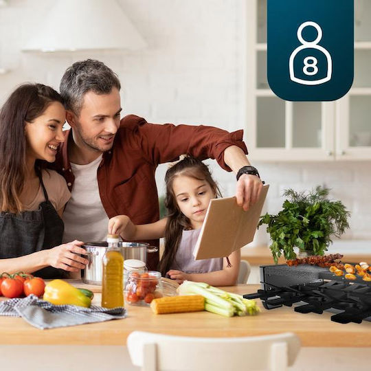 Η ηλεκτρική ψησταριά από την εταιρία Cecotec σας επιτρέπει να απολαύσετε δημιουργικά γεύματα με οικογένεια και φίλους. Περιλαμβάνει 8 μεμονωμένα αντικολλητικά τηγάνια για ψήσιμο και τήξη τυριού, για τηγανητά αυγά, καθώς και για επιδόρπια, συνοδευόμενα από 8 ξύλινες σπάτουλες.