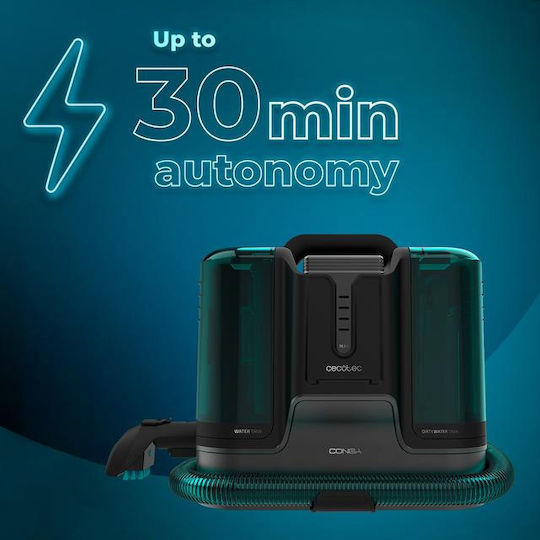 Η ασύρματη ηλεκτρική σκούπα, από την εταιρία Cecotec, είναι κατάλληλη για χαλιά και ταπετσαρίες. Ψεκάζει, καθαρίζει και σκουπίζει γρήγορα και αποτελεσματικά. Διαθέτει ισχύ 150 W και 2 δεξαμενές νερού (μια δεξαμενή για καθαρό νερό και μια για βρώμικο νερό). Έχει μεγαλη αυτονομία 30 λεπτών και εύκαμπτο σωλήνα μήκους 1.3 m που σας επιτρέπει να φτάσετε στις πιο απομακρυσμένες περιοχές.