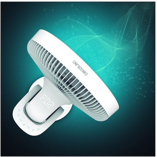 Η μπαταρία ιόντων λιθίου 2600 mAh επιτρέπει μεγάλη αυτονομία χωρίς καλώδια, καθιστώντας τον ανεμιστήρα φορητό. Η LED οθόνη εμφανίζει το επίπεδο μπαταρίας, την ταχύτητα, το χρονόμετρο και τον βαθμό ταλάντωσης. Επιπλέον, υπάρχει φως στο πίσω μέρος για φωτισμό του δωματίου.