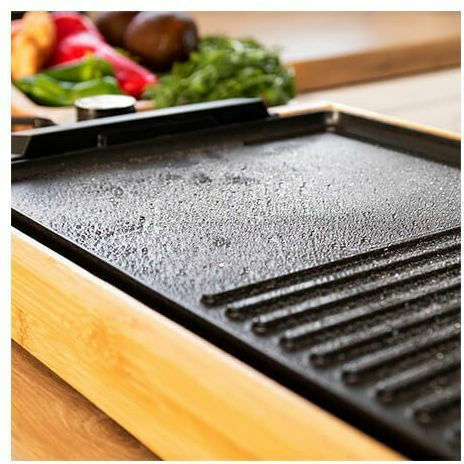 Με επιφάνεια μαγειρέματος 37.5 x 24.5 cm, είναι ιδανική για κρέας, λαχανικά, τηγανητά αυγά, θαλασσινά, ψάρια και κρέπες. Διαθέτει ρυθμιζόμενο θερμοστάτη 5 επιπέδων για ομοιόμορφο και τραγανό αποτέλεσμα. Ο δίσκος συλλογής λίπους πλένεται στο πλυντήριο πιάτων και μπορεί να χρησιμοποιηθεί απευθείας στο τραπέζι ή ως δίσκος για διατήρηση της θερμοκρασίας του φαγητού.