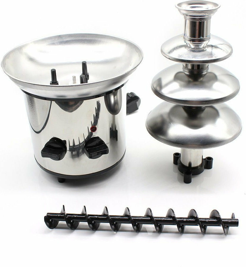 • Η ζεστή σοκολάτα μεταφέρεται μέσω μιας εξόδου στην κορυφή και ρέει διαρκώς και ασταμάτητα από το σιντριβάνι