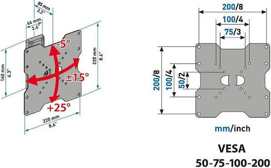 Με πολλαπλές επιλογές VESA, μπορείς εύκολα να βρεις τη σωστή τοποθέτηση για την τηλεόρασή σου. Οι αποστάσεις των βιδών περιλαμβάνουν διάφορες ρυθμίσεις, προσφέροντας ευελιξία και προσαρμογή στις ανάγκες σου.