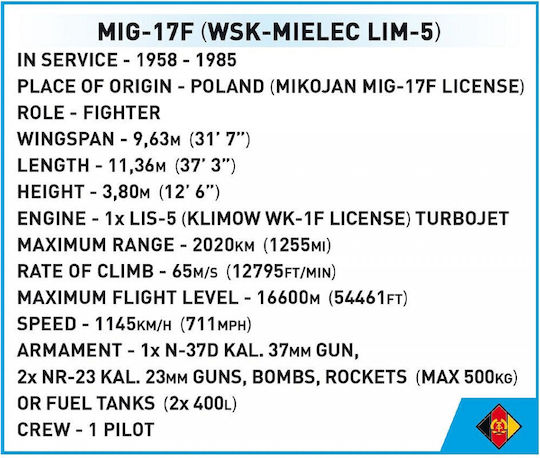 Cobi Τουβλάκια Historical Collection Cold War LIM-5 MIG-17F East Germany Air Force για 7+ Ετών 575τμχ COBI-5825