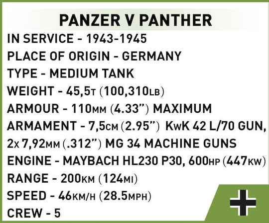 KLOCKI COBI 3099 Czołg Panzer V Panther HC WW2