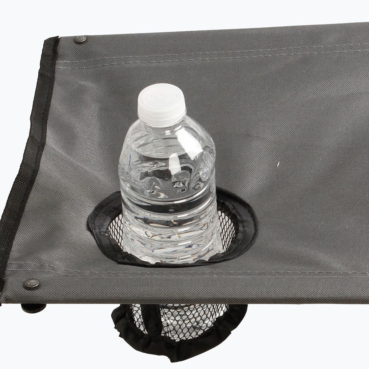 Ράντζα κατασκήνωσης με βολικό τραπεζάκι πλευράς και ενσωματωμένη θήκη για ποτήρι στο τραπεζάκι πλευράς.