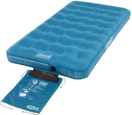 Το φουσκωτό στρώμα διαθέτει υποστηρικτικό σύστημα ελατηρίων και επιφάνεια από μαλακό βουρτσισμένο πολυεστέρα για άνετο ύπνο. Το τσαντάκι μεταφοράς Wrap ‘N’ Roll, που είναι προσαρτημένο στο φουσκωτό στρώμα, διευκολύνει την αποθήκευσή του. Η επένδυση με ύφασμα από βουρτσισμένο πολυεστέρα καθιστά αυτό το ανυψωμένο διπλό φουσκωτό στρώμα ελαφρύτερο, πιο ανθεκτικό και πιο ανθεκτικό στις τρυπίτσες σε σύγκριση με τα κανονικά φουσκωτά στρώματα PVC.