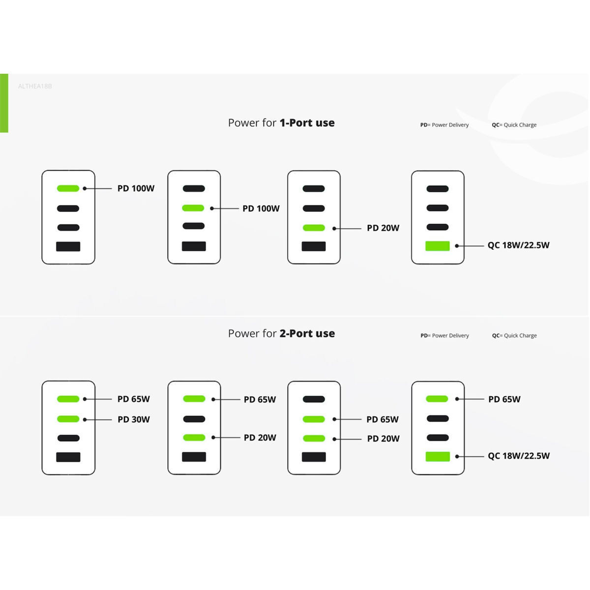 Ανακαλύψτε την άνεση και την ταχύτητα με τον φορτιστή GaN που διαθέτει μία θύρα USB-A και τρεις θύρες USB-C. Αυτός ο φορτιστής 100W Power Delivery προσφέρει γρήγορη φόρτιση, ιδανική για τις σύγχρονες συσκευές που απαιτούν ενεργειακή απόδοση.