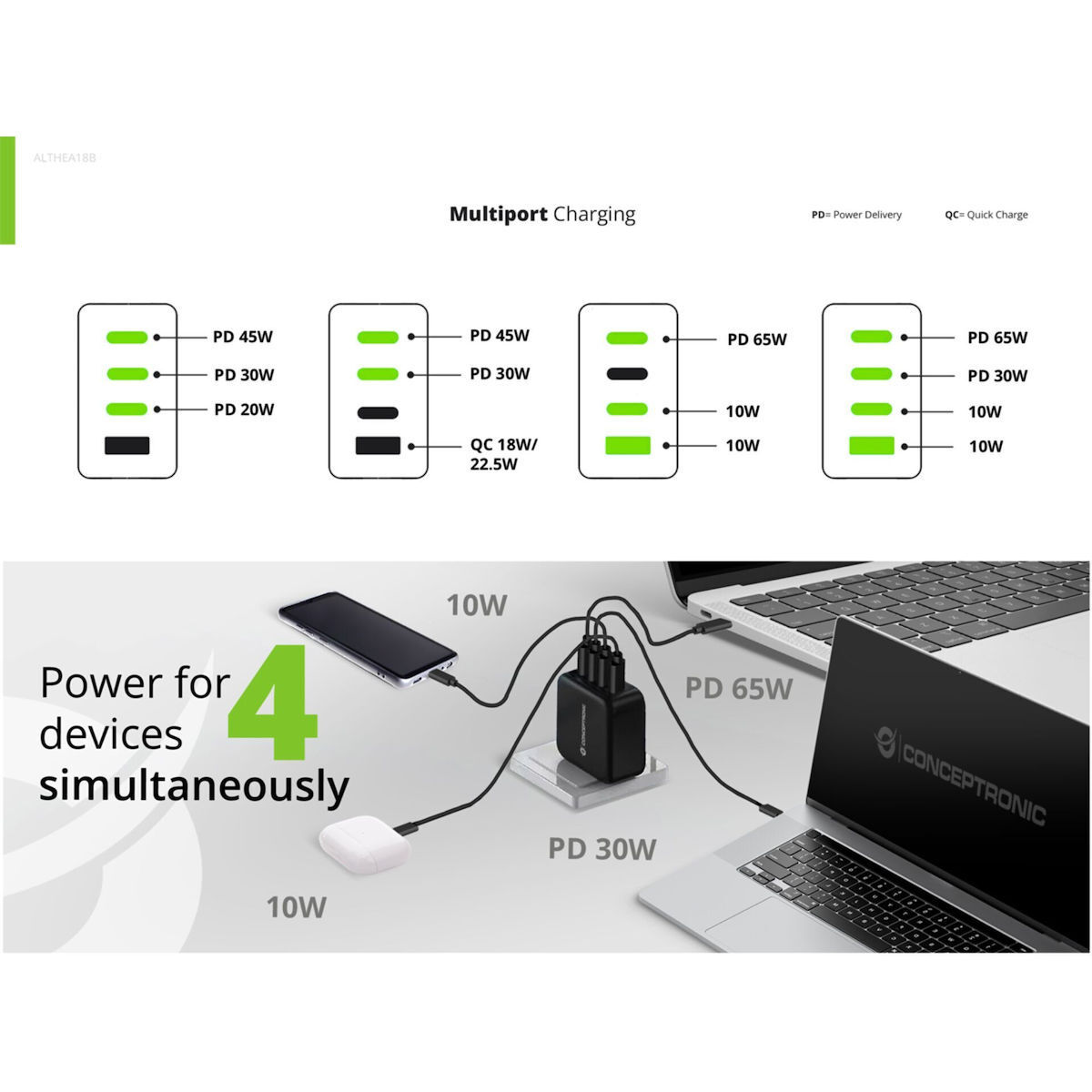 Conceptronic ALTHEA18B USB-C 100W με Καλώδιο USB-C – USB-C