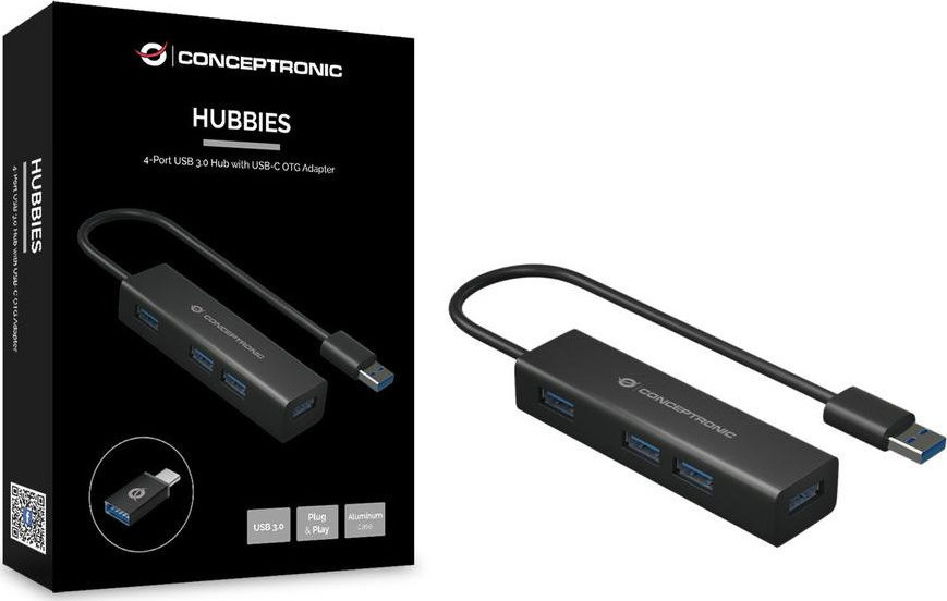 Conceptronic USB 3.0 Hub 4 Θυρών με σύνδεση USB-A / USB-C (HUBBIES06B)
