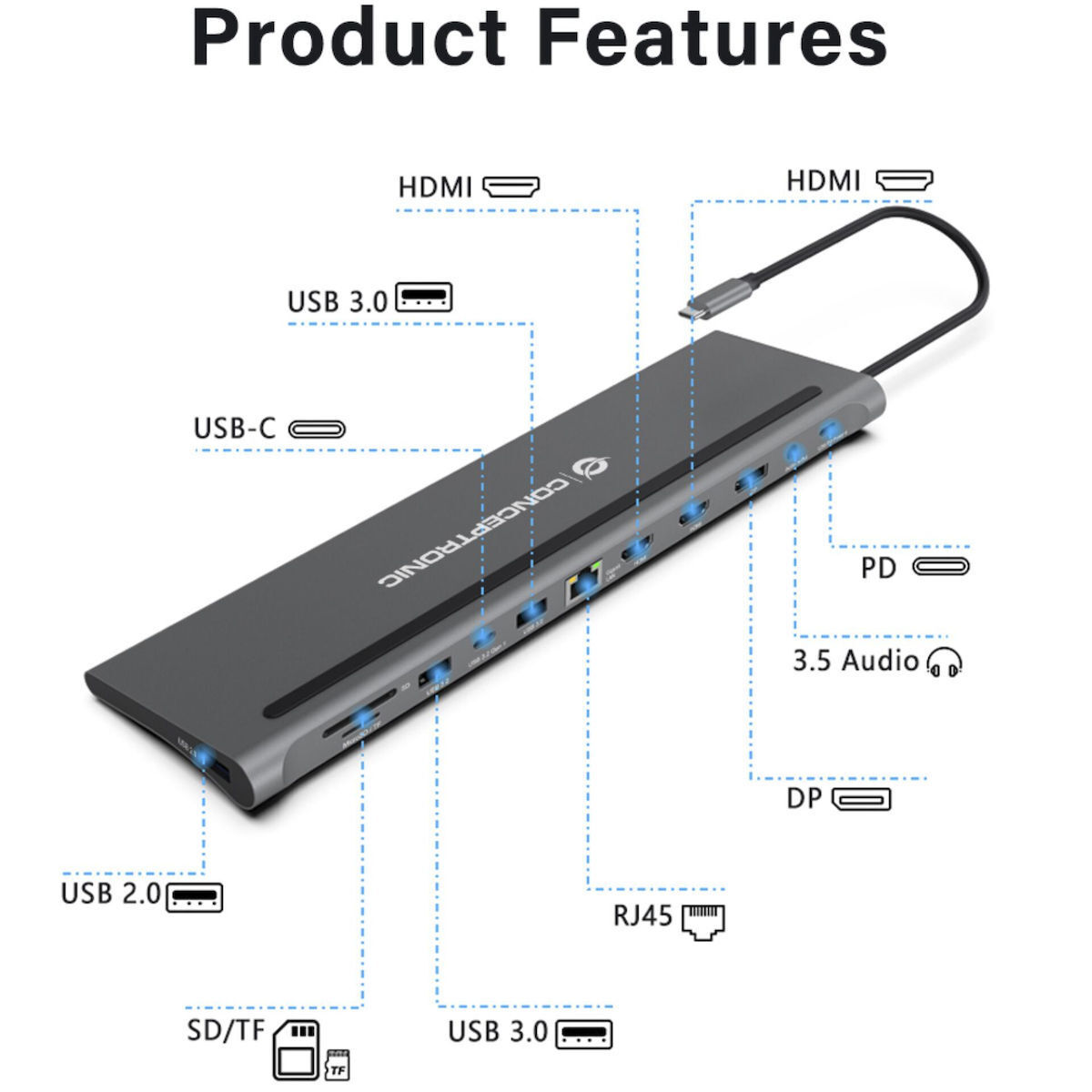 Conceptronic USB-C / USB-A Docking Station 4K PD Ethernet (DONN17G)