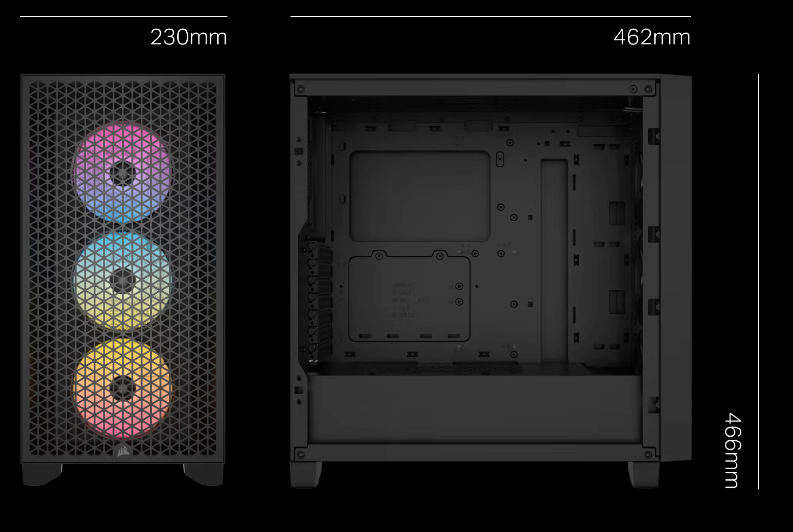 Το CORSAIR 3000D RGB AIRFLOW παρουσιάζει ένα πλαίσιο ATX μεσαίου πύργου με αποδοτικό σχεδιασμό υψηλής ροής αέρα, που περιλαμβάνει τρεις προεγκατεστημένους ανεμιστήρες CORSAIR AR120 RGB που προσφέρουν εξαιρετική ψύξη και ζωντανά εφέ φωτισμού.