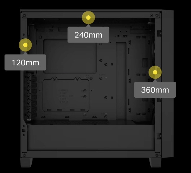 Ένα ευρύχωρο εσωτερικό χωράει έως και 8x ανεμιστήρες 120mm ή 4x 140mm, μαζί με πολλαπλά ψυγεία, συμπεριλαμβανομένων έως και 360mm μπροστά και 280mm στην οροφή.