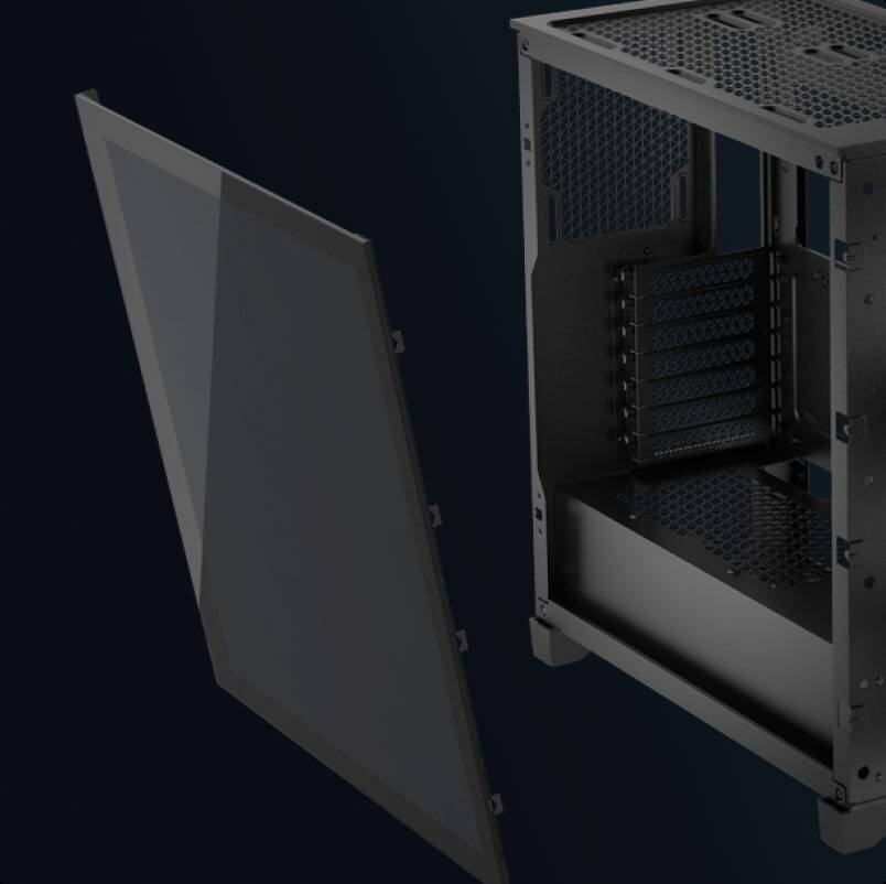 Παρουσιάστε τα εσωτερικά σας εξαρτήματα πίσω από ένα όμορφο πλαϊνό πάνελ tempered glass με εύκολη τοποθέτηση και αποσύνδεση χωρίς εργαλεία.