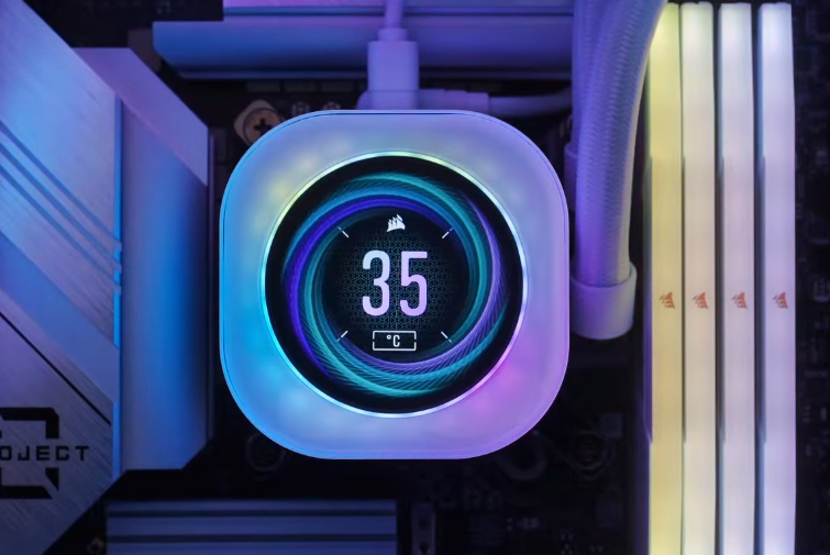 Η προσαρμοσμένη οθόνη LCD 2,1″ 480×480 μπορεί να ελεγχθεί μέσω της εφαρμογής iCUE, δίνοντάς σας τη δυνατότητα να επιλέξετε από 16,7 εκατομμύρια προσαρμοσμένα χρώματα ή να επιλέξετε από προκαθορισμένες κινούμενες εικόνες και οθόνες δεδομένων. Περιλαμβάνει πλήρη ενσωμάτωση GIPHY στην εφαρμογή, προσφέροντάς σας πρόσβαση σε χιλιάδες αγαπημένα memes και GIFs.