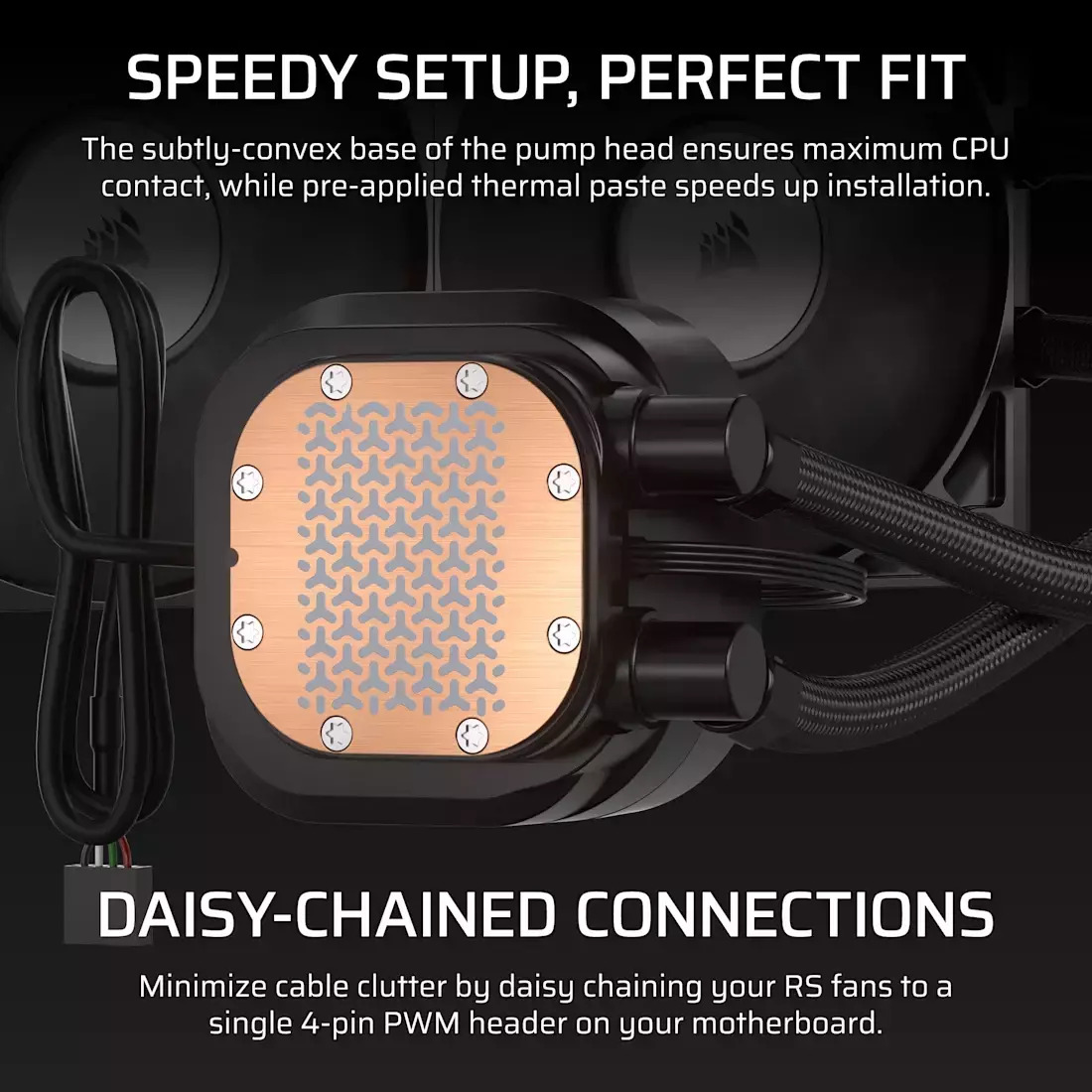 Σχεδιασμένη από την ομάδα μηχανικών της CORSAIR, η αντλία τροφοδοτείται από έναν τριφασικό κινητήρα που προσφέρει υψηλότερη ροή υγρού και χαμηλότερα επίπεδα θορύβου σε σχέση με προηγούμενα μοντέλα. Ο προηγμένα σχεδιασμένος ψυχρός δίσκος μεγιστοποιεί την επαφή με το IHS της CPU, εξασφαλίζοντας σταθερά χαμηλότερες θερμοκρασίες.