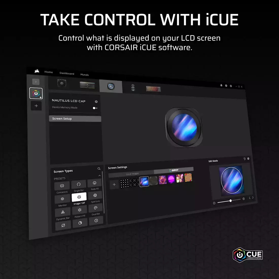 Απεικονίστε τη θερμοκρασία της CPU, animated GIFs, memes ή το λογότυπο της ομάδας σας σε μια καθαρή οθόνη IPS 480 x 480 στα 30 FPS, με εξαιρετικά φωτεινό backlight 600 cd/m² και πάνω από 16,7 εκατομμύρια χρώματα. Το λογισμικό iCUE περιλαμβάνει πλήρη ενσωμάτωση GIPHY, προσφέροντάς σας πρόσβαση σε χιλιάδες αγαπημένα memes και GIFs.