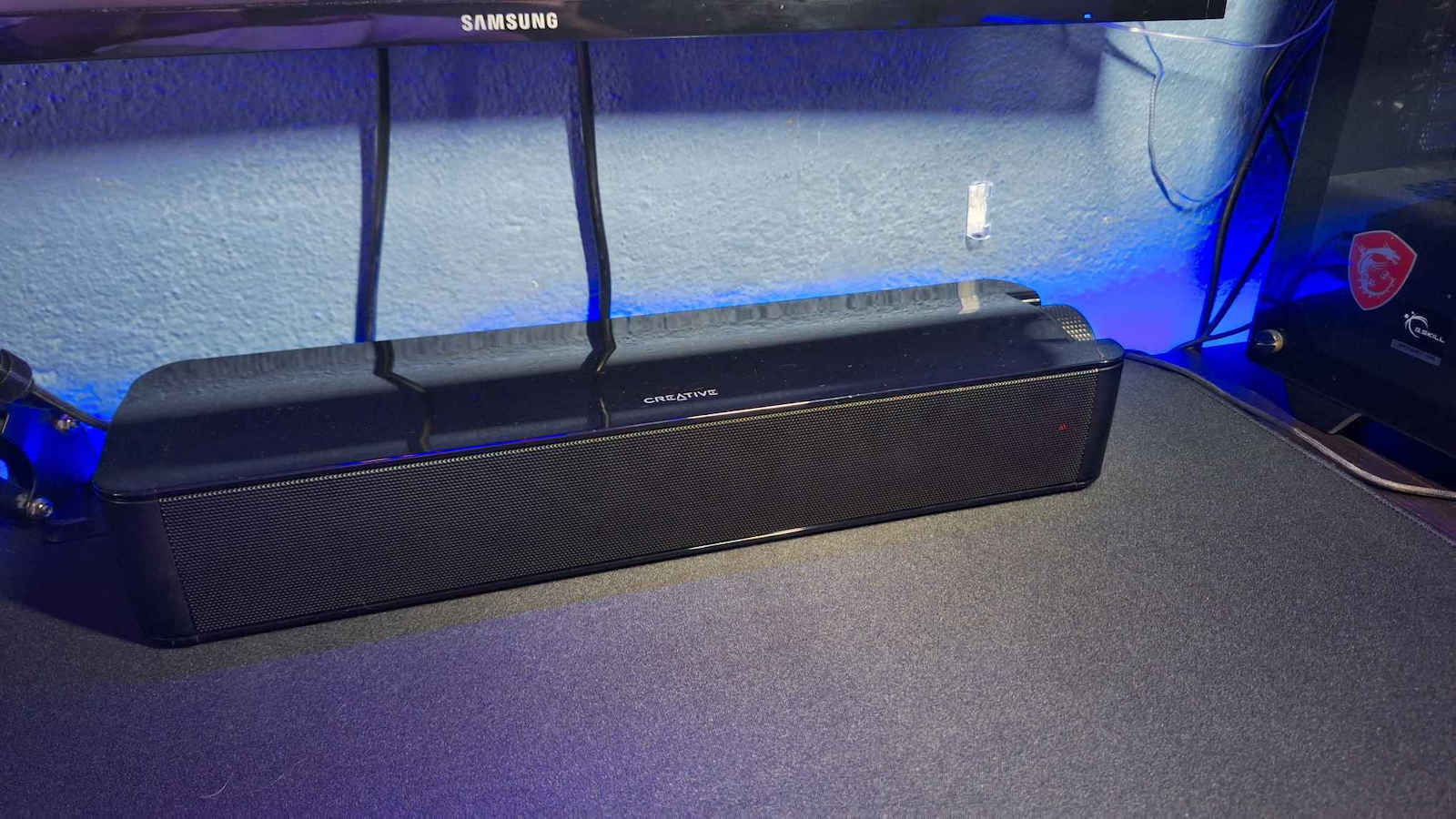 Με κομψή μαύρη σχεδίαση και γυαλιστερό φινίρισμα, το Creative Stage SE ταιριάζει εύκολα με κάθε διάταξη γραφείου και προσαρμόζεται άνετα κάτω από την οθόνη. Επιπλέον, με το ενσωματωμένο κουμπί ελέγχου της έντασης ήχου που βρίσκεται στο πλάι της ηχομπάρας, είναι εύκολο να κάνετε γρήγορες προσαρμογές του ήχου εν κινήσει.