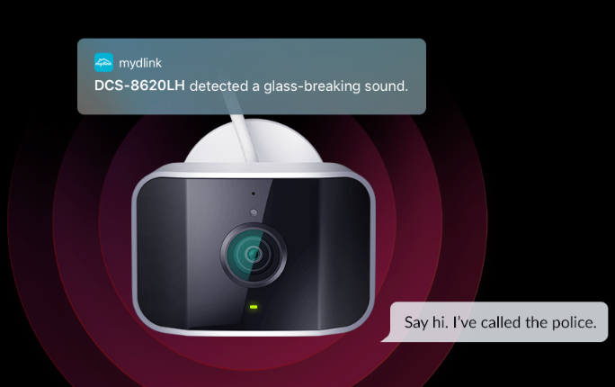 Η DCS-8620LH περιλαμβάνει έναν ενσωματωμένο ανιχνευτή θραύσης γυαλιού. Εάν σπάσει κάποιο γυαλί, θα ειδοποιηθείτε αμέσως για να διατηρήσετε το σπίτι σας και τους αγαπημένους σας ασφαλείς εάν υπάρχει κάποιος κίνδυνος κοντά.