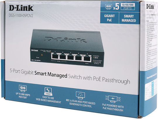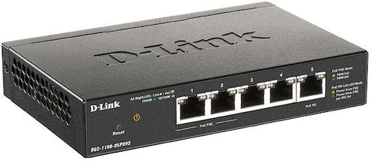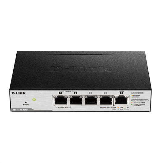 D-Link DGS-1100-05PD v2 Managed L2 PoE Switch με 5 Θύρες Gigabit (1Gbps) Ethernet