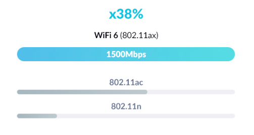 Φέρτε στο σπίτι το έκτης γενιάς Wi-Fi 6 με ταχύτητες 1.5Gbps .Απολαύστε ένα άλμα έως και 38% ταχύτερων ταχυτήτων από το ασύρματο AC, για ταχύτερη και πιο ποιοτική περιήγηση στο διαδίκτυο ,ροή 4K και διαδικτυακά παιχνίδια.