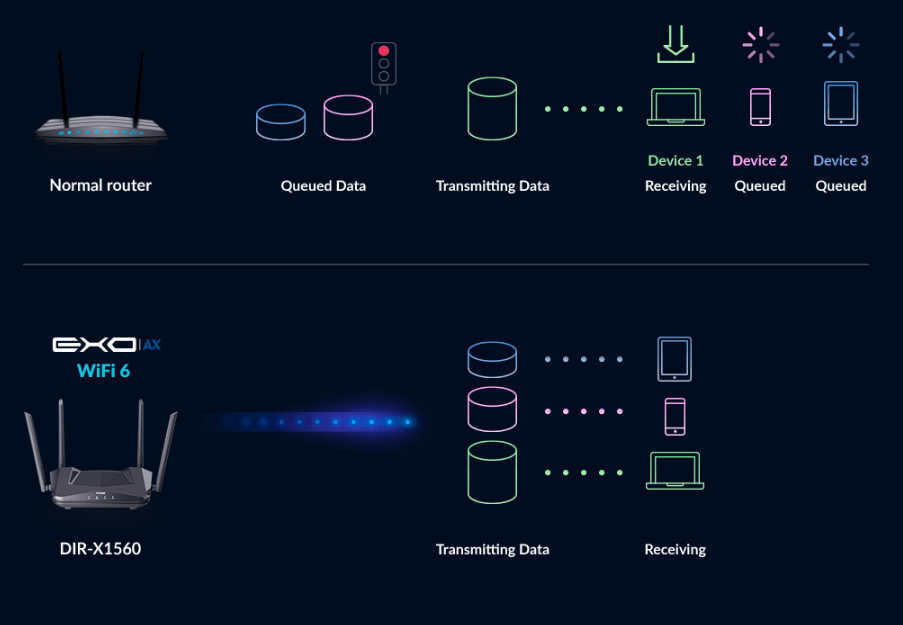 Το Wi-Fi 6 χρησιμοποιεί έναν συνδυασμό τεχνολογίας OFDMA και MU-MIMO για να αυξήσει τον συνολικό αριθμό συσκευών που το δίκτυό σας μπορεί να χειριστεί αβίαστα έως και 4 φορές, ώστε να μπορείτε να μεταφέρετε περισσότερες από τις τελευταίες τεχνολογίες στο έξυπνο σπίτι σας. Και λόγω OFDMA μπορεί να μεταδίδει σε πολλές συσκευές ταυτόχρονα επιτρέποντας έτσι σε όλες τις Wi-Fi συσκευές του σπιτιού σας να λειτουργούν με πρωτοφανή αποδοτικότητα.