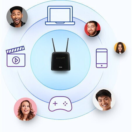 Το DWR-960 προσφέρει κινητή σύνδεση 4G LTE Cat7 με ταχύτητες έως και 300 Mbps1 και ασύρματο AC με συνδυασμένους ρυθμούς μεταφοράς έως και 1200 Mbps2, για γρήγορη πρόσβαση στο διαδίκτυο.