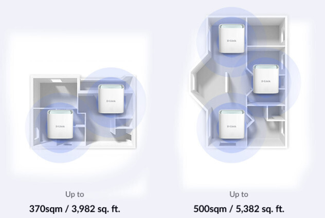 Τα συστήματα πλέγματος EAGLE PRO AI AX1500 δύο ή τριών μονάδων (κόμβων) είναι σχεδιασμένα να καλύπτουν χώρους έως 370 τ.μ. και 500 τ.μ. αντίστοιχα. Και στις δύο περιπτώσεις, τα συστήματα mesh είναι επεκτάσιμα καθώς μπορούν να αποτελούνται από έως και τέσσερις μονάδες.