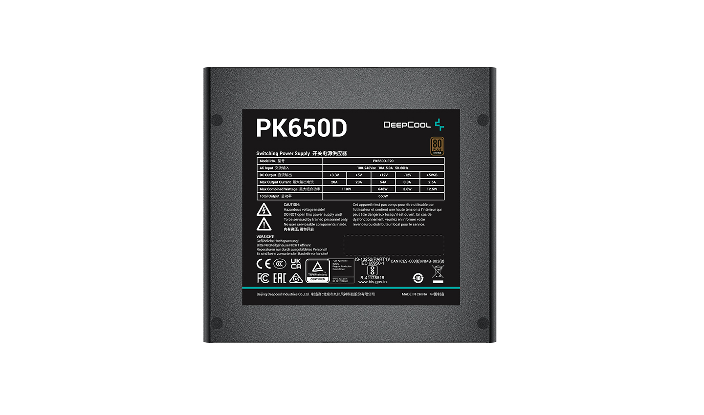 Deepcool PK650D 650W Μαύρο Τροφοδοτικό Υπολογιστή Full Wired 80 Plus Bronze