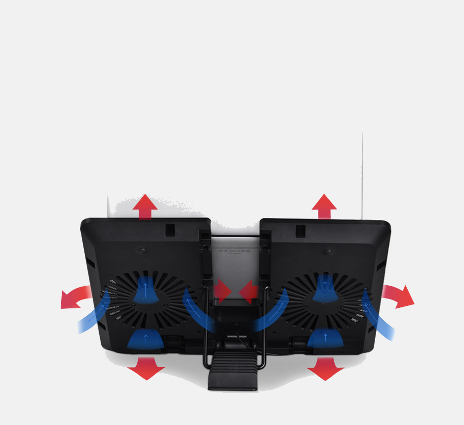 2 ενσωματωμένοι ανεμιστήρες 140 mm λειτουργούν με ταχύτητα 1.000 RPM προκειμένου να διατηρήσουν τον φορητό υπολογιστή δροσερό. Οι ανεμιστήρες τρέχουν σε πολύ χαμηλά επίπεδα θορύβου για να εξαλείψουν οποιαδήποτε πηγή διαταραχής θορύβου κατά τη διάρκεια της εργασίας ή της μελέτης.