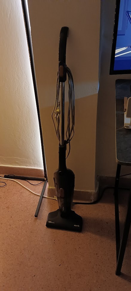 Το μακρύ καλώδιο 5 μέτρων σου προσφέρει μεγάλη ελευθερία κινήσεων, ιδανικό για διαμερίσματα έως και 80 τ.μ. Όταν τελειώσεις, τυλίγεις το καλώδιο και το κρεμάς στον ειδικό γάντζο. Η βούρτσα δαπέδου έχει τροχούς για ευκολία στη μετακίνηση, ενώ η λαβή της σκούπας είναι σχεδιασμένη να εφαρμόζει άνετα στο χέρι σου, ώστε να μη σε κουράζει.