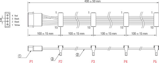 - Σύνδεση: Molex 4pin Male (αρσενικό) σε 4 x SATA 15pin Female (θηλυκό)