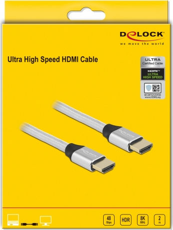DeLock Braided Cable HDMI male – HDMI male 2m Ασημί 85367