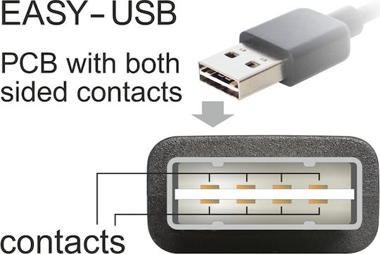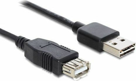 Καλώδιο USB μάρκας Delock, με ανδρική-θηλυκή υποδοχή (USB A – USB A) σε μαύρο χρώμα. Το σύστημα EASY-USB επιτρέπει τη σύνδεση του καλωδίου από οποιαδήποτε πλευρά.