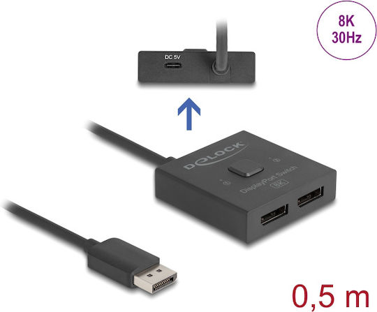 DELOCK DisplayPort switch 18906, 2 σε 1, bidirectional, 8K/30Hz, μαύρο.