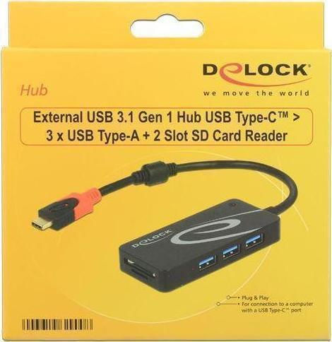 DeLock USB 3.1 Hub 3 Θυρών με σύνδεση USB-C (62900)