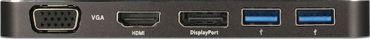 DeLock USB-C Docking Station με HDMI/DisplayPort 4K PD και συνδεση 3 Οθονών Μαύρο (87773)